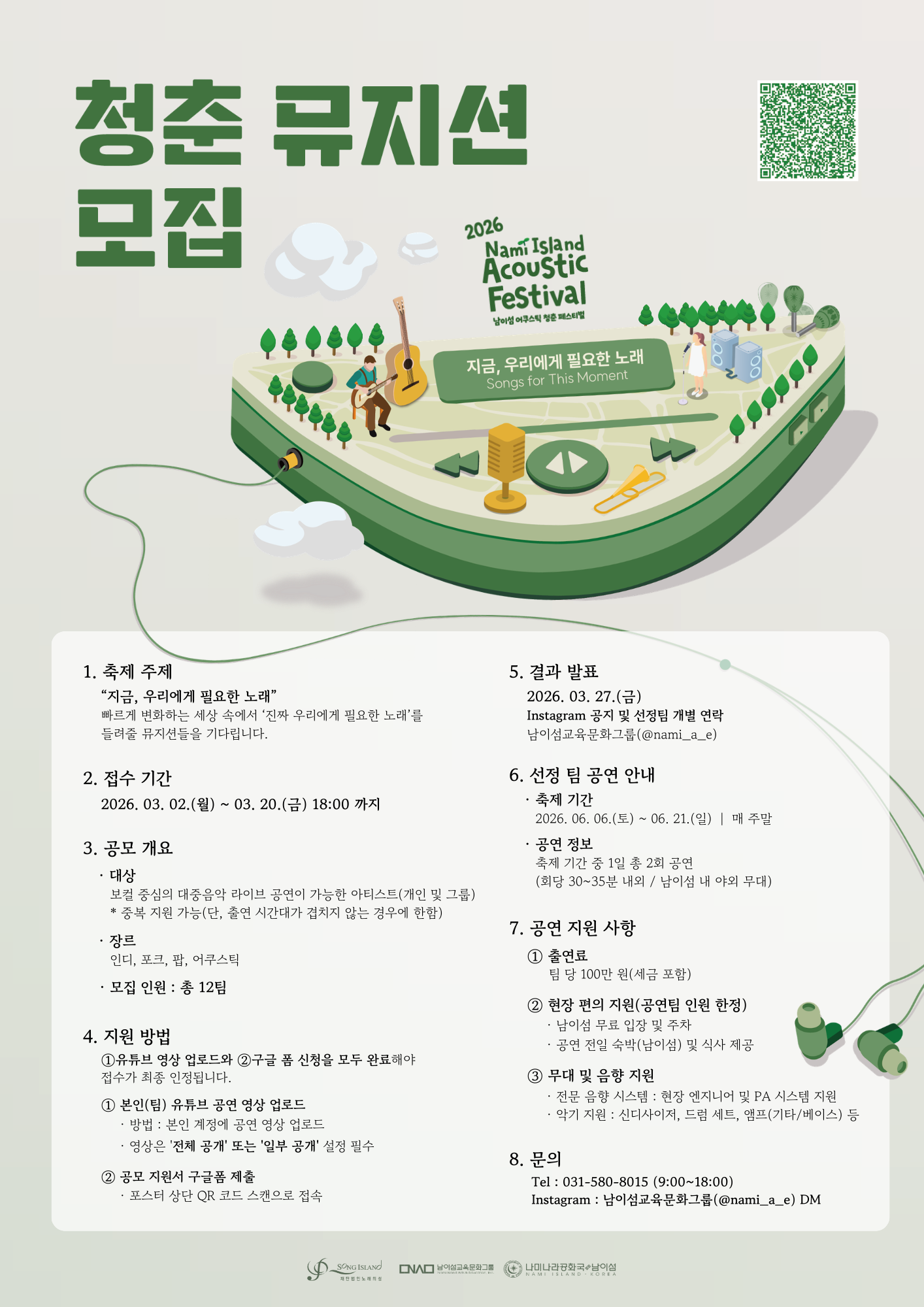안녕하세요! 2026 남이섬 어쿠스틱 청춘 페스티벌 챗봇입니다.